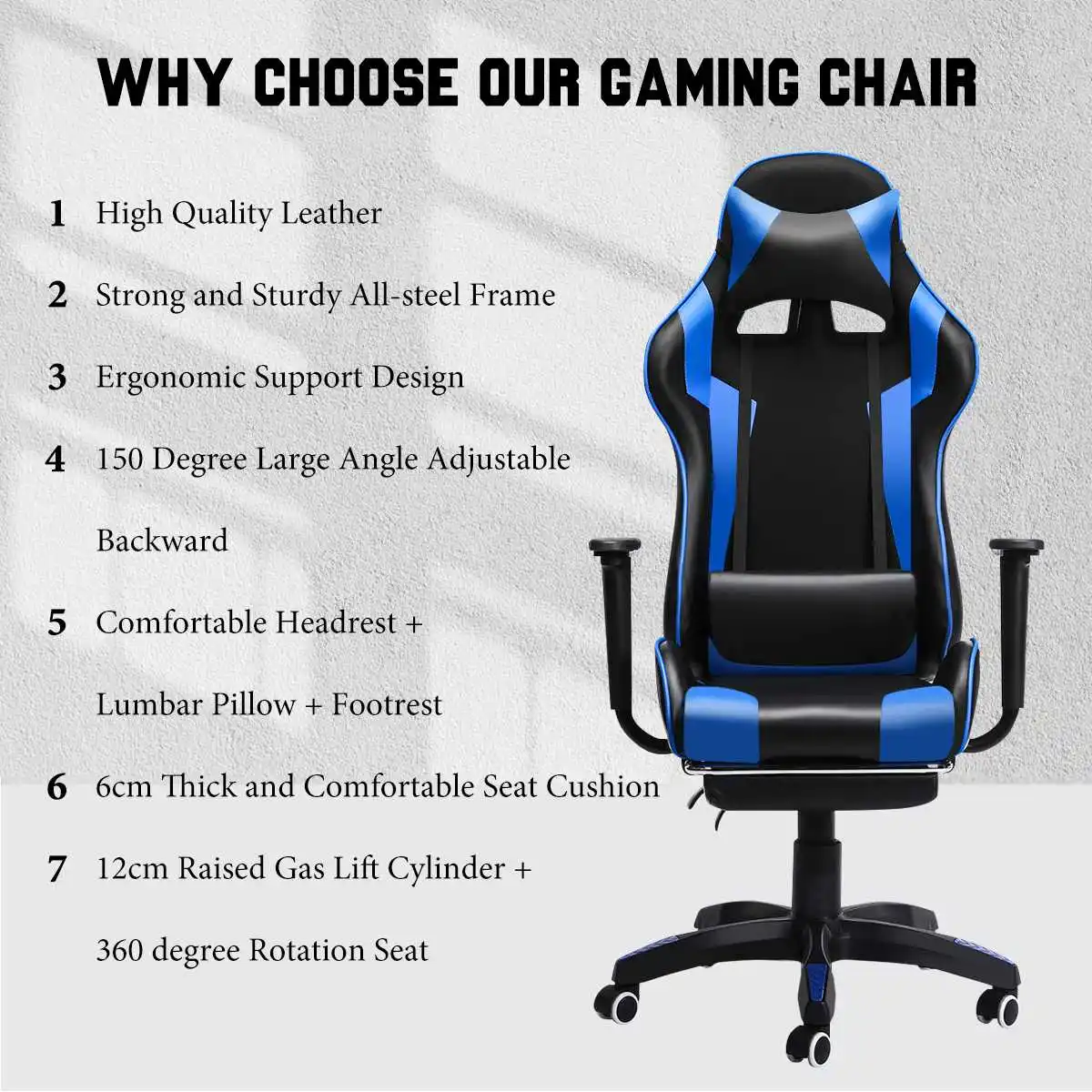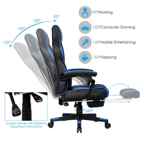 Bestoffice Gaming Chair Office Chair With Footrest Lumbar Support Headrest Armrest Adjustable Pc Gamer Chair Blue Walmart Com